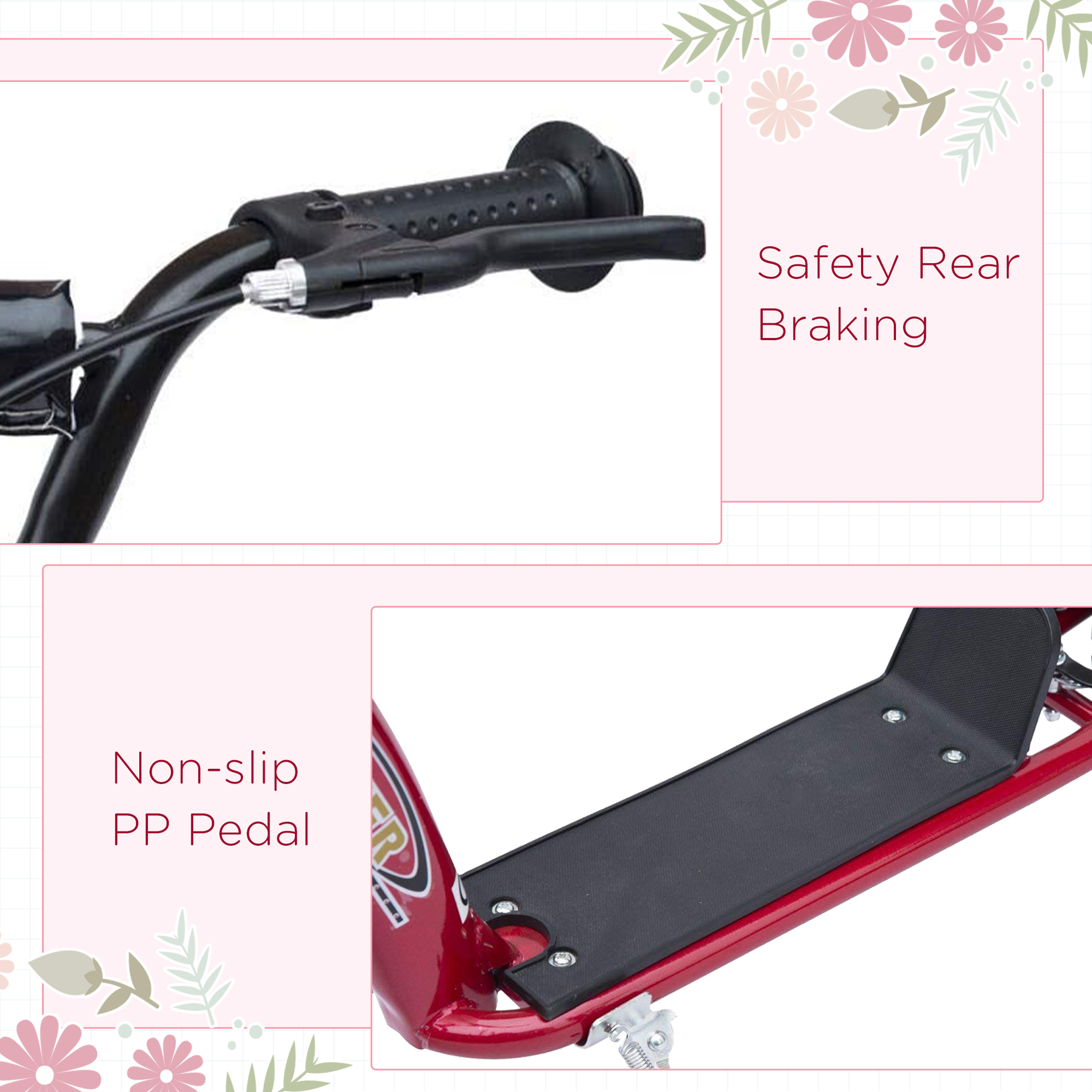 - Rear brakes for a quick and safe stop